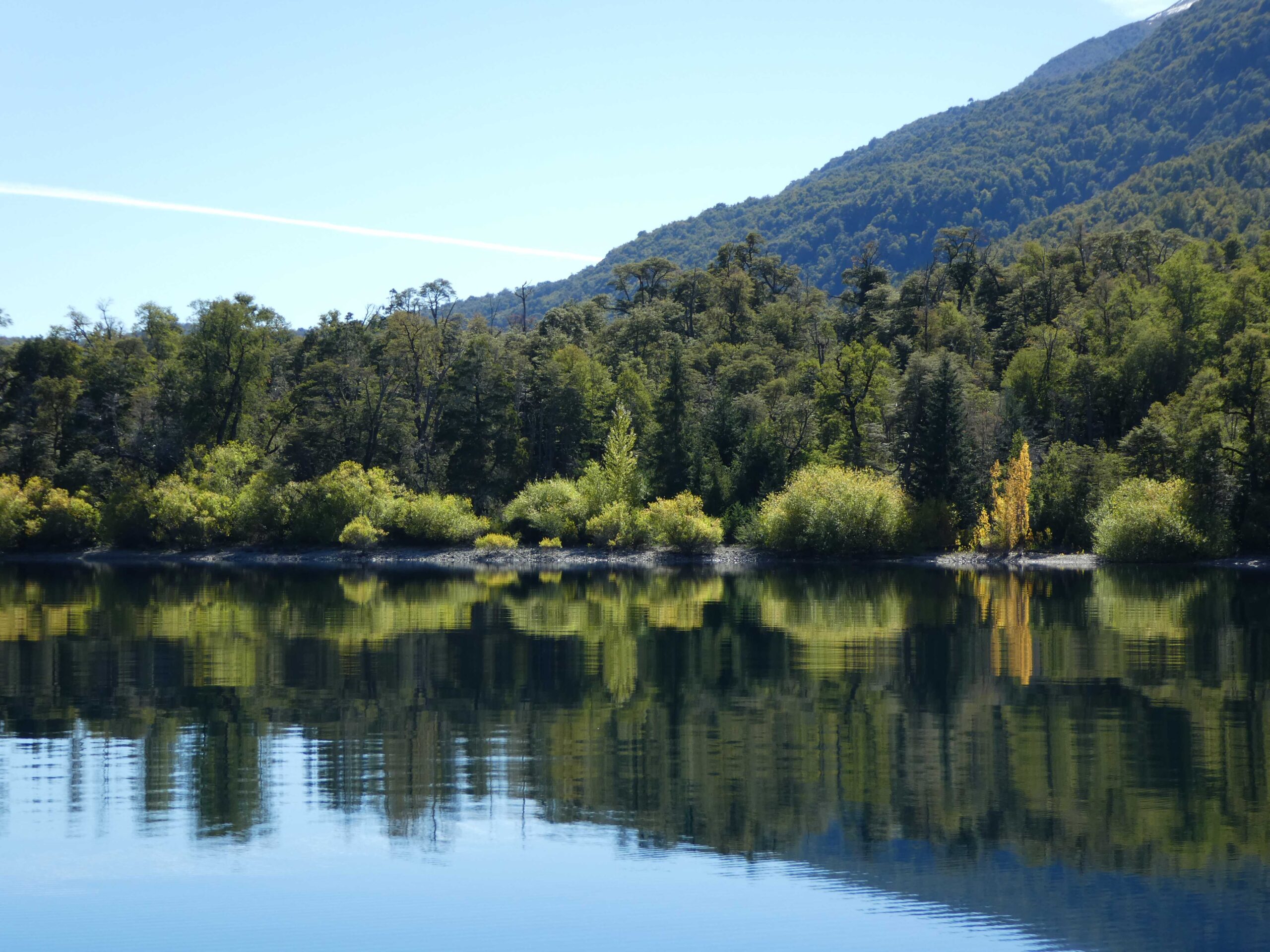 The lakes themselves are amazing, and we can’t count the number of times we’ve commented on how stupid beautiful and unreal the landscapes have been. The result is countless pictures of water, and more water, and then more water after that. Rather than bore you with a catalog of the lakes, our tours, and our lame attempt to match the correct photos to the correct names, we’ve chosen to share some pictures from our boat trip on Lago Lácar, where we stayed in the small town of San Martín de los Andes nestled against the lake shore. We were literally a 3-minute walk to the lake from our guest house. We chose to share Lago Lácar because it was an amazingly sunny day and the lake itself was uncommonly still and glassy. The only disturbances in the water the entire day were the ones made by our boat. Here are some of our favorite “mirror” photos from one of our days on a lake.